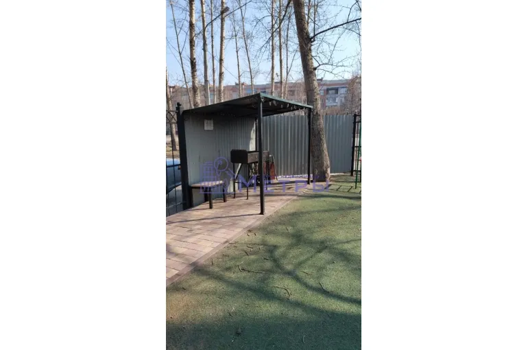 Территория дома огорожена металлическим забором с калитками и воротами, которые оборудованы домофонной системой. На огороженной территории дома расположены две современные детские площадки, мангальная зона и авто-парковка с достаточным количеством парковочных мест.